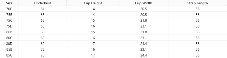 Sizes: 70C, 75B, 75C, 75D, 80B, 80C, 80D, 85B, 85C