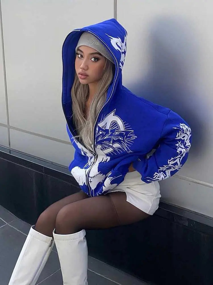 Y2K Harajuku EMO Skeleton Love Pattern Zipper Cardigan
